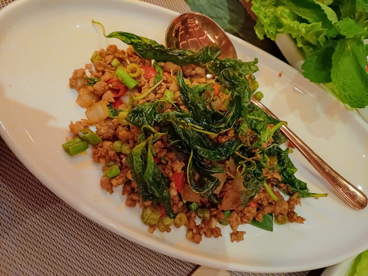 One of the standout dishes at Ruên Thai & Vietnamese is the 芒果糯米飯 (Mango Sticky Rice), a delicious and refreshing dessert that perfectly combines the sweetness of ripe mango with the creaminess of coconut-infused sticky rice. For those who love bold flavors, the 炭烤香茅西冷牛肉 (Charcoal Grilled Lemongrass Sirloin Beef) is a must-try, offering a smoky and aromatic taste that is sure to satisfy meat lovers. Another highlight is the 泰式豬肉碎羅勒葉包 (Thai-style Minced Pork with Basil), which brings together tender minced pork with fragrant basil wrapped in a perfect bite-sized parcel.