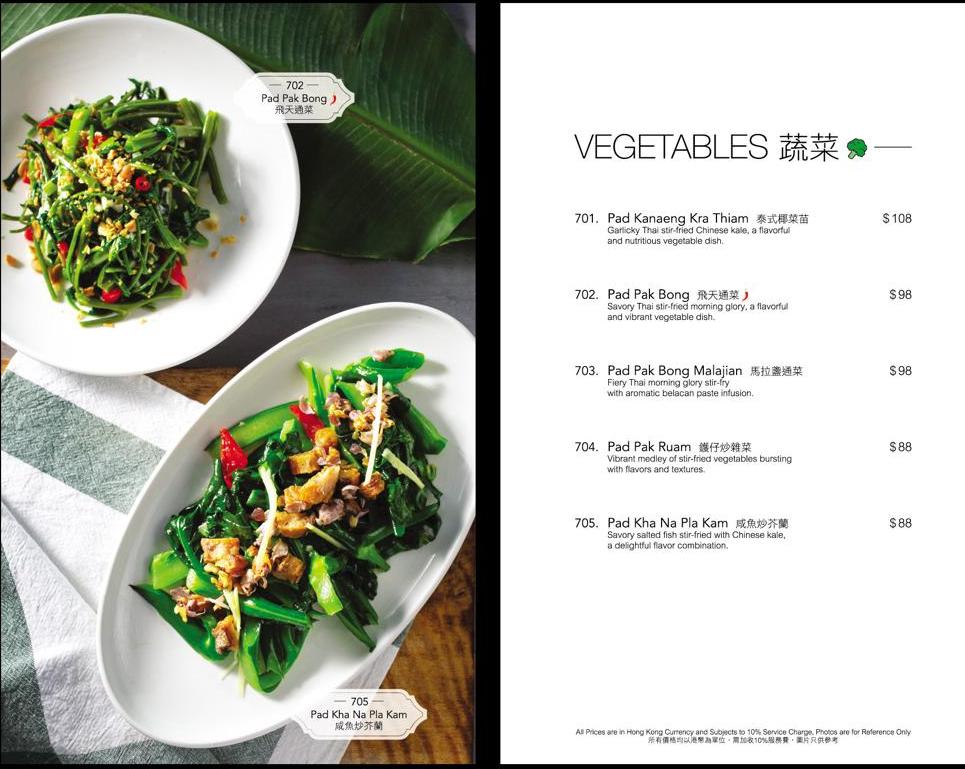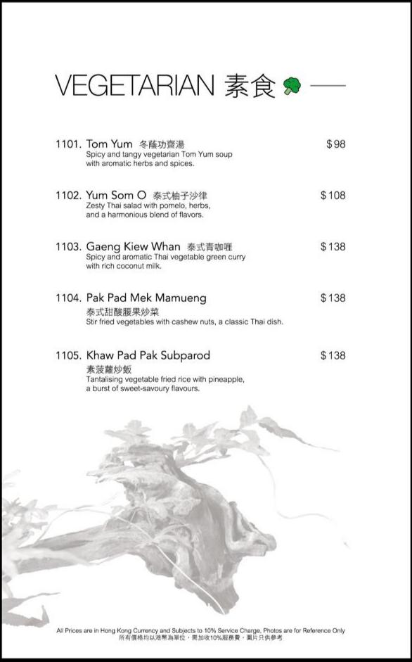 Vegetarians will enjoy the 通菜 (Water Spinach), a simple yet delicious dish sautéed to perfection, providing a fresh and crispy texture. The Sticky Rice is an essential side dish that complements a variety of main courses, adding a soft and slightly sweet flavor. For curry enthusiasts, the Green Curry offers a rich, creamy, and spicy profile that perfectly pairs with rice or noodles. The Crab Omelette rounds off the selection with a luxurious, indulgent option, featuring a light yet flavorful omelette stuffed with fresh crab.