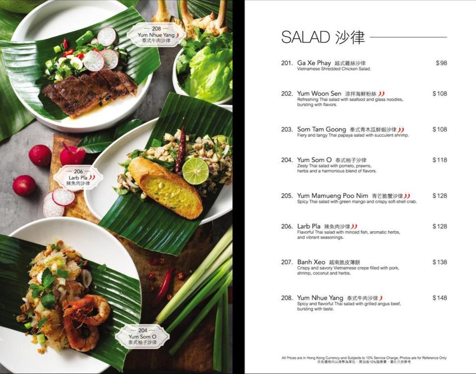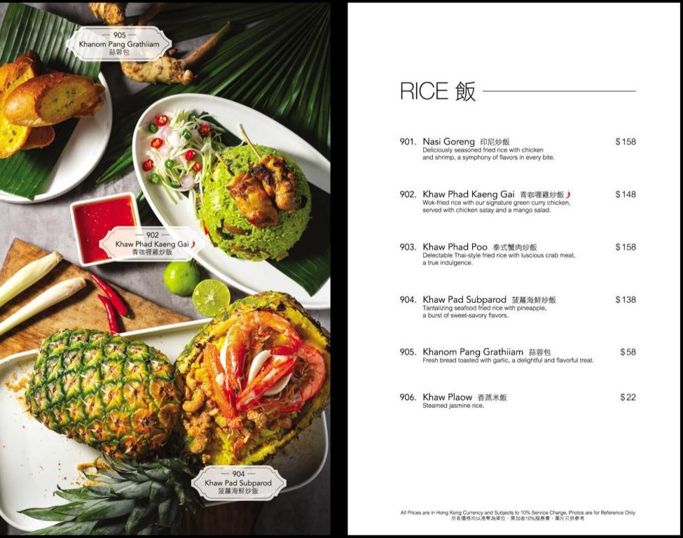 For those seeking fresh and light options, the 越式鮮蝦米紙卷 (Vietnamese Fresh Shrimp Rice Paper Rolls) is a great choice, featuring delicate shrimp wrapped in soft rice paper, served with a tangy dipping sauce. The Pineapple Fried Rice is another satisfying dish, packed with a rich mix of fried rice, pineapple, and savory seasonings, offering a refreshing yet hearty flavor profile. The Pomelo Prawns Salad delivers a delightful balance of citrusy sweetness from pomelo, paired with succulent prawns in a zesty, tangy dressing.
